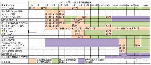 美国 0-18 岁免疫程序,资料翻译自 CDC.gov