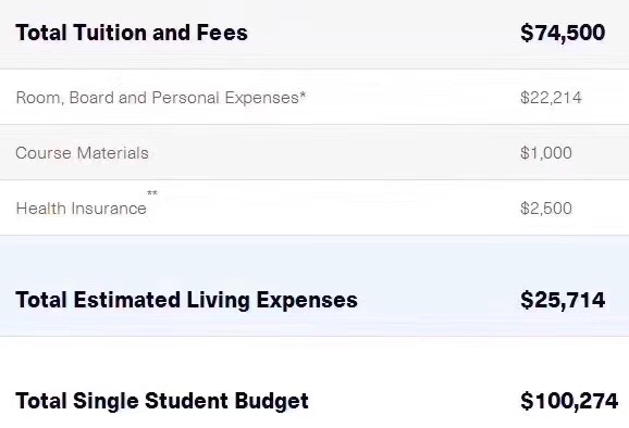 学制一年,学费与生活费如下图。学位为MMS