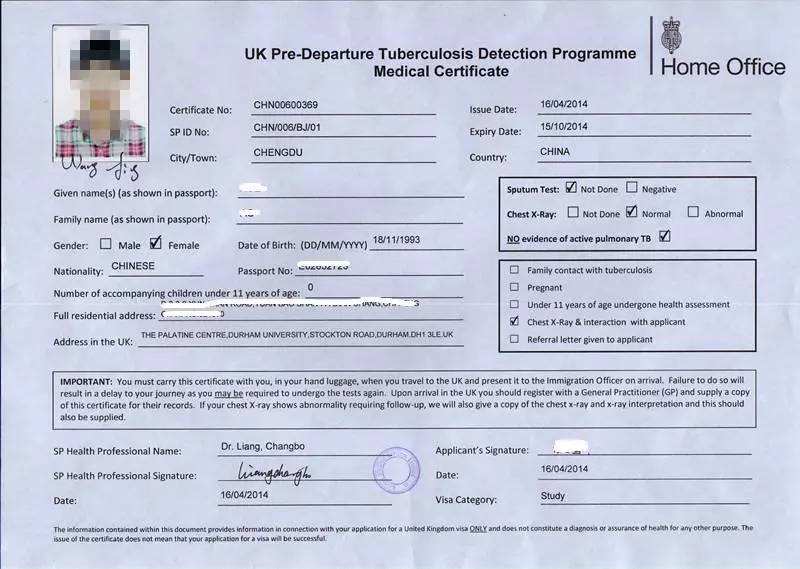 A:如果结果显示肺结核不确定,则必须要接受痰标本测试,最快2个月才能出结果。如果结果被诊断患有肺结核,则无法申请英国签证,直到医院证明你参加完治疗并已痊愈,治疗时间在6个月以上。因此,对自己身体状况不确定的同学,必须提前至少两个月参加肺结核测试。同时这个报告也可能出现误诊。如果有,务必提出疑问,换一家指定医院重新检测,否则医院上报UKVI,最后确认是误诊也没用,还是必须去做痰检的。