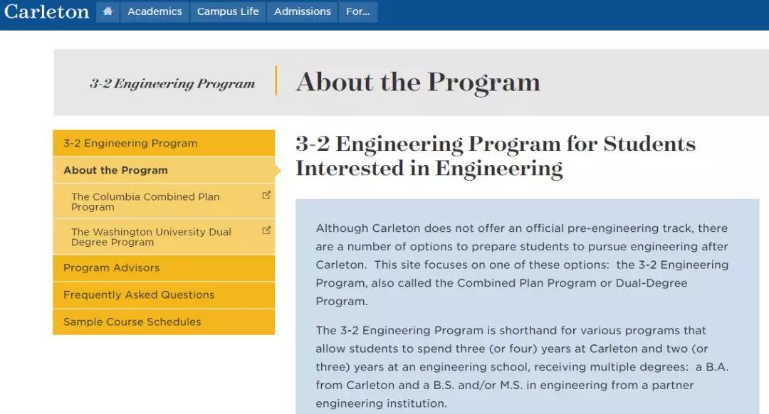 有的文理学院自己提供工程专业,而更多文理学院是与加州理工、达特茅斯学院、哥大、圣路易斯华盛顿等大学合作,提供“3/2”联合课程, 将优秀的文理教育与工程学位结合起来。 被合作最多的就是哥大、达特茅斯学院,像达特茅斯学院有“3-2”计划,也有“2-1-1-1-1”计划。