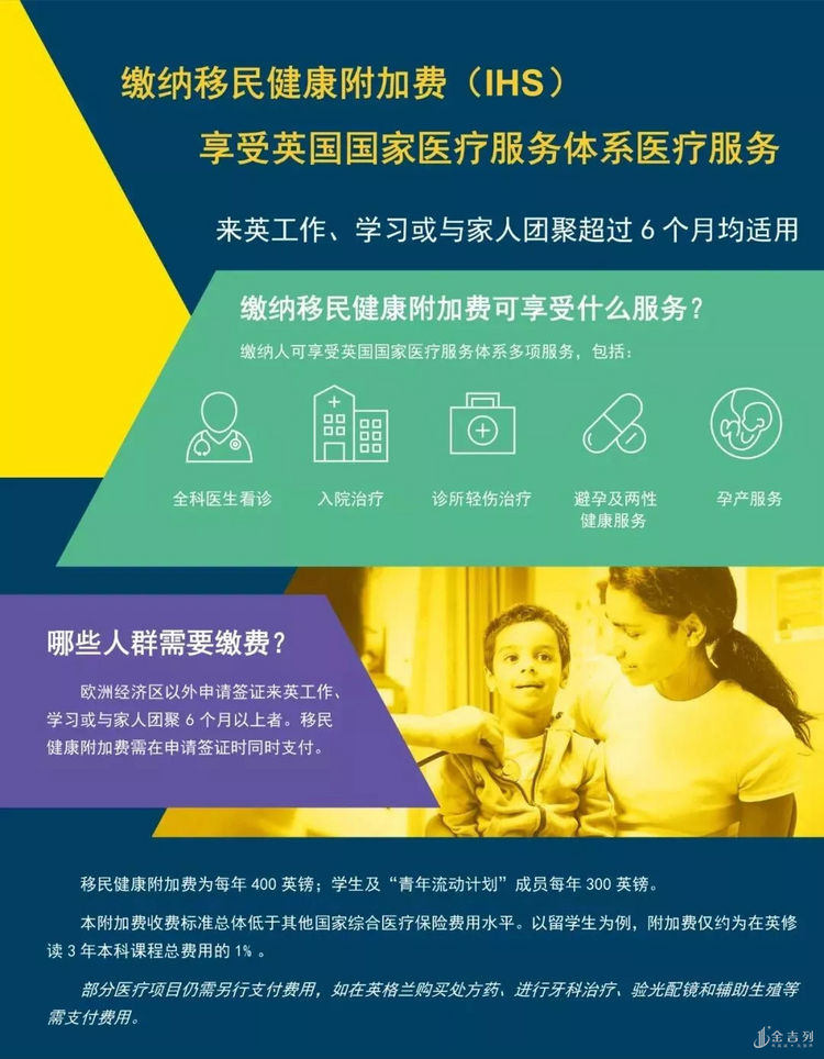IHS 全称为 Immigration Health Surcharge (移民医疗附加费) , 缴纳即可享受 NHS 英国国家医疗服务体系的医疗服务。