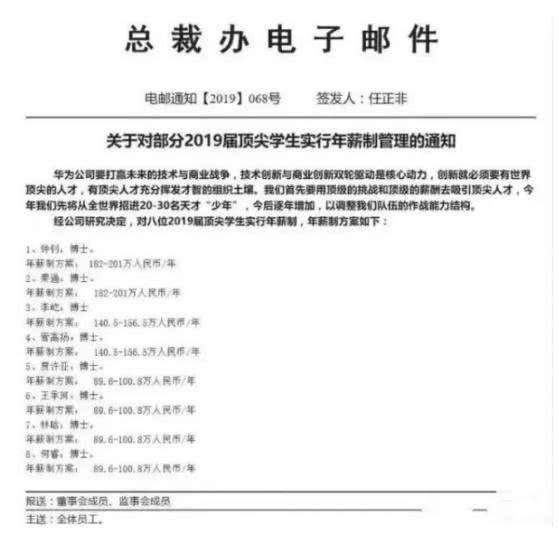 7月23日,据华为总裁办签发的电子邮件,华为对部分2019届顶尖学生实行年薪制,其中,薪酬最高的达到201万。到底是什么样的人才获得华为如此青睐呢?