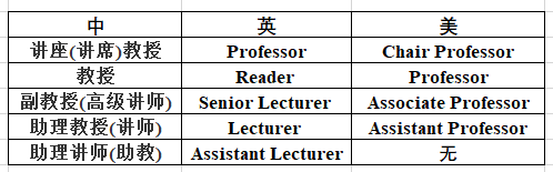 美制无Assistant Lecturer,转制后多用Visiting Scholar泛称代替。