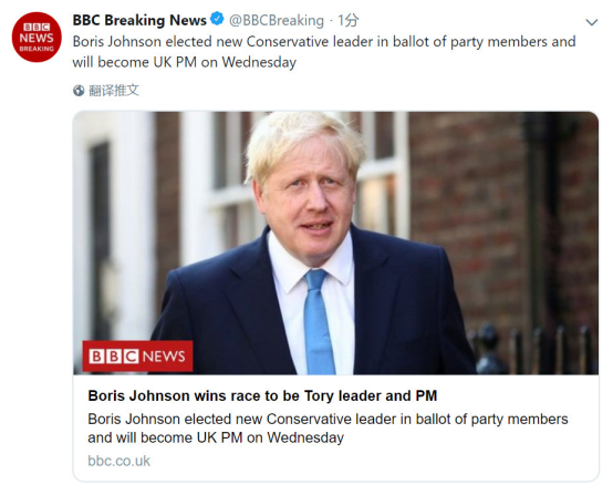 他将在特雷莎·梅24日接受完最后一次首相质询后,正式入驻唐宁街10号,成为英国新任首相。