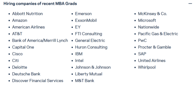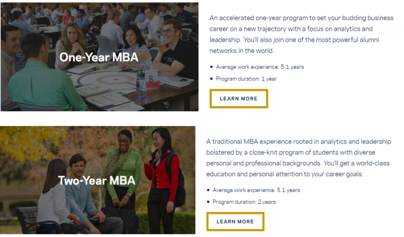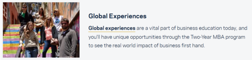 平均有五年的工作经验,每个班级都有其成员的独特视角,从传统的商业专业人士到退伍军人,男女,以及来自不同种族和文化背景的学生。