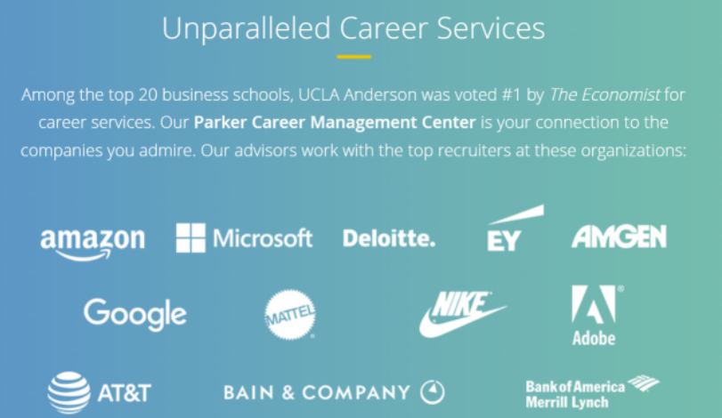作为加州大学洛杉矶分校安德森分校的MBA学生,您可以访问我们的校友网络,包括由全球领导者提供的强大讲座,以及与最近在您想去的地方工作的校友的咖啡聊天。我们将您连接到顶部和入口处的人员。