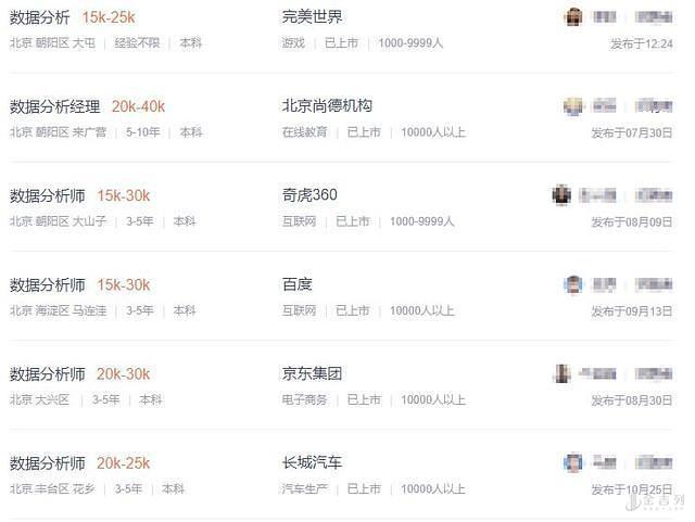 同样数据分析师在国内,像京东、百度、长城汽车等知名企业待遇也还算不错。年薪18万~48万不等,主要还是看能力和经验。