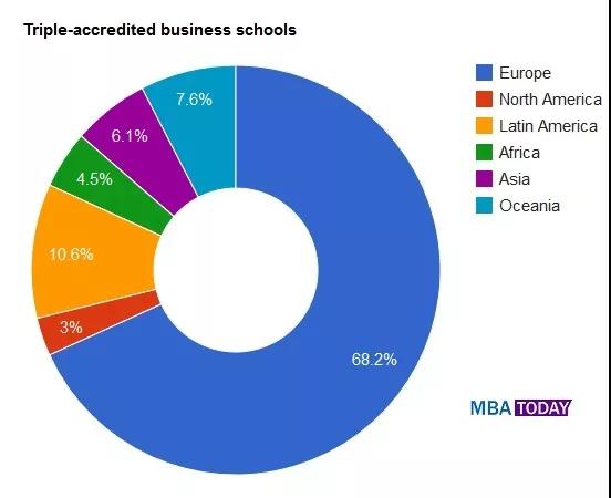 据MAB Toay今年三月的统计,全世界共有90所商学院拥有“三重认证”头衔,其中69%来自欧洲。