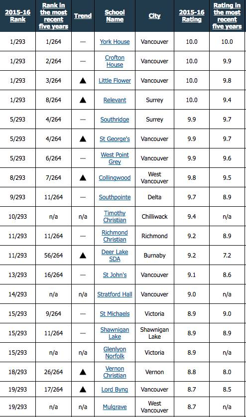 私立中学依旧占据榜单前列, 前20名仅有1所公立中学,要去BC省读高中的同学么,在选校之前可以看一下这个排名,做一个评估再决定去哪一所哦!~