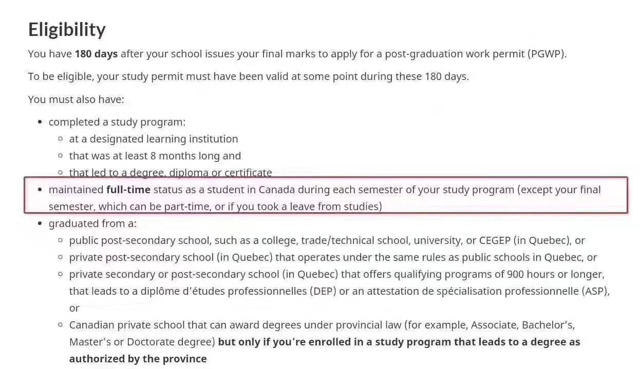 1. 毕业生有180天的时间可以申请毕业工签(PGWP),从拿到最终的成绩单开始算起,所以学生需要保证从申请到拿到毕业工签你的学习签证是一直有效的。