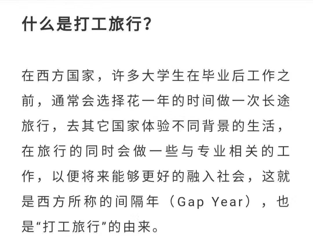 "打工度假"是一些欧美国家流行的现象,这些国家的年轻人往往在完成学业后,开始正式的工作之前,花费大约一年时间到遥远的国外旅行,在此期间在当地打工赚取生活费用。 "(注:Working Holiays Visa ,简称WHV)。中国大陆公民可以申请国家:澳大利亚 ,新西兰等。