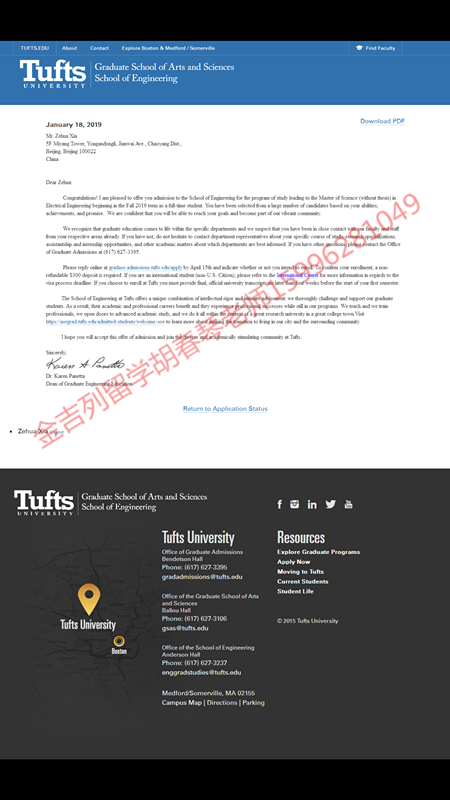 录取结果:Tufts University,Northeastern University,The George Washington University,Stevens Institute of Technology