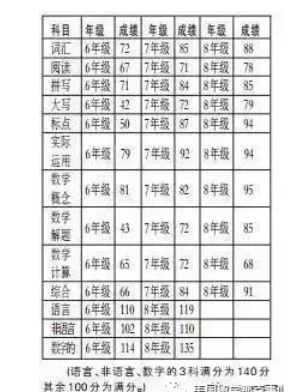 表里的数据显示,除了8年级“数学计算”的68分低于7年级的72分外,所有数据均是“年级越高,成绩越好”。换言之,随着年龄增长,学习难度加大,孩子成绩越好。