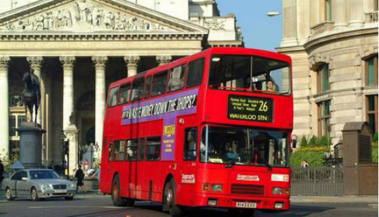 在英国公共汽车很贵,但服务质量是见仁见智。这里最大的特色是车站没有站名,给我们外来者带来很大不便,每新到一地都要请求司机到达目的地时提醒我们。有时司机忘了就可能错过。在车站等车时要时刻留意车来的方向,一旦自己要乘的车来了时要招手拦截,车子才会为你停下。上车时要把钱预备好,向司机买票。