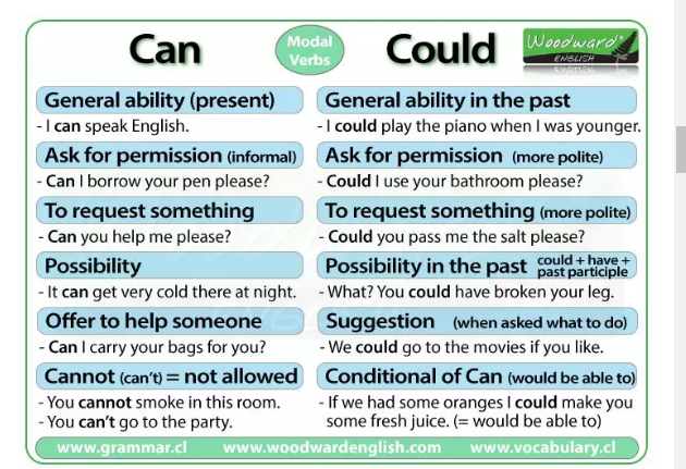 又比如,关于can/coul的区别,网站给出了这样一张图: