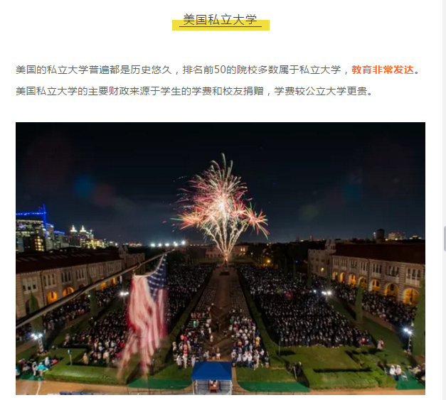 - 很多学校成立于美国成立之前,私立学校占大多数,而且 聚集了大量顶级的名校 。