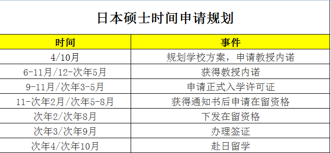 > 日本硕士申请时间规划表