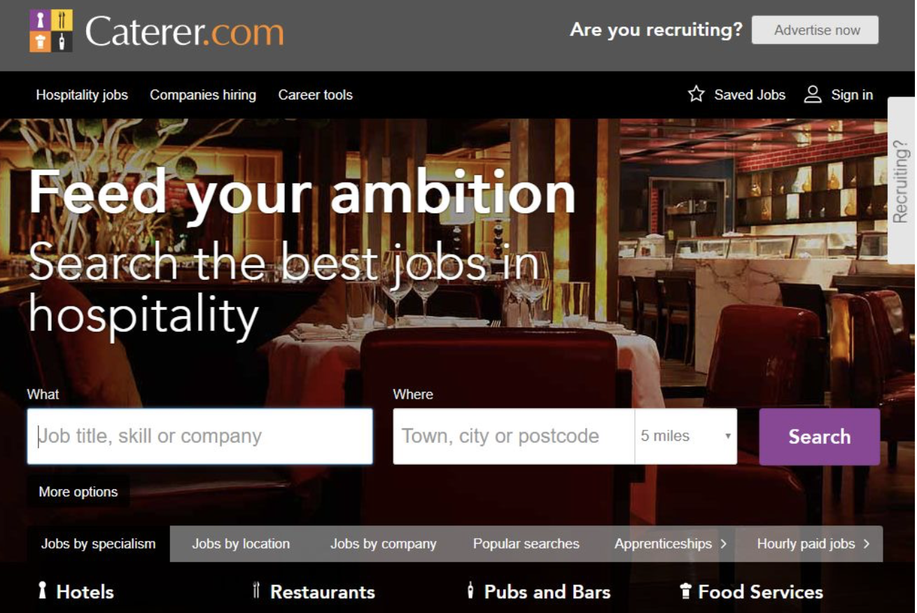 Caterer.com 发布 饮食服务产业 相关工作的网站,包括酒店、饮食、旅游和酒吧管理等工作。