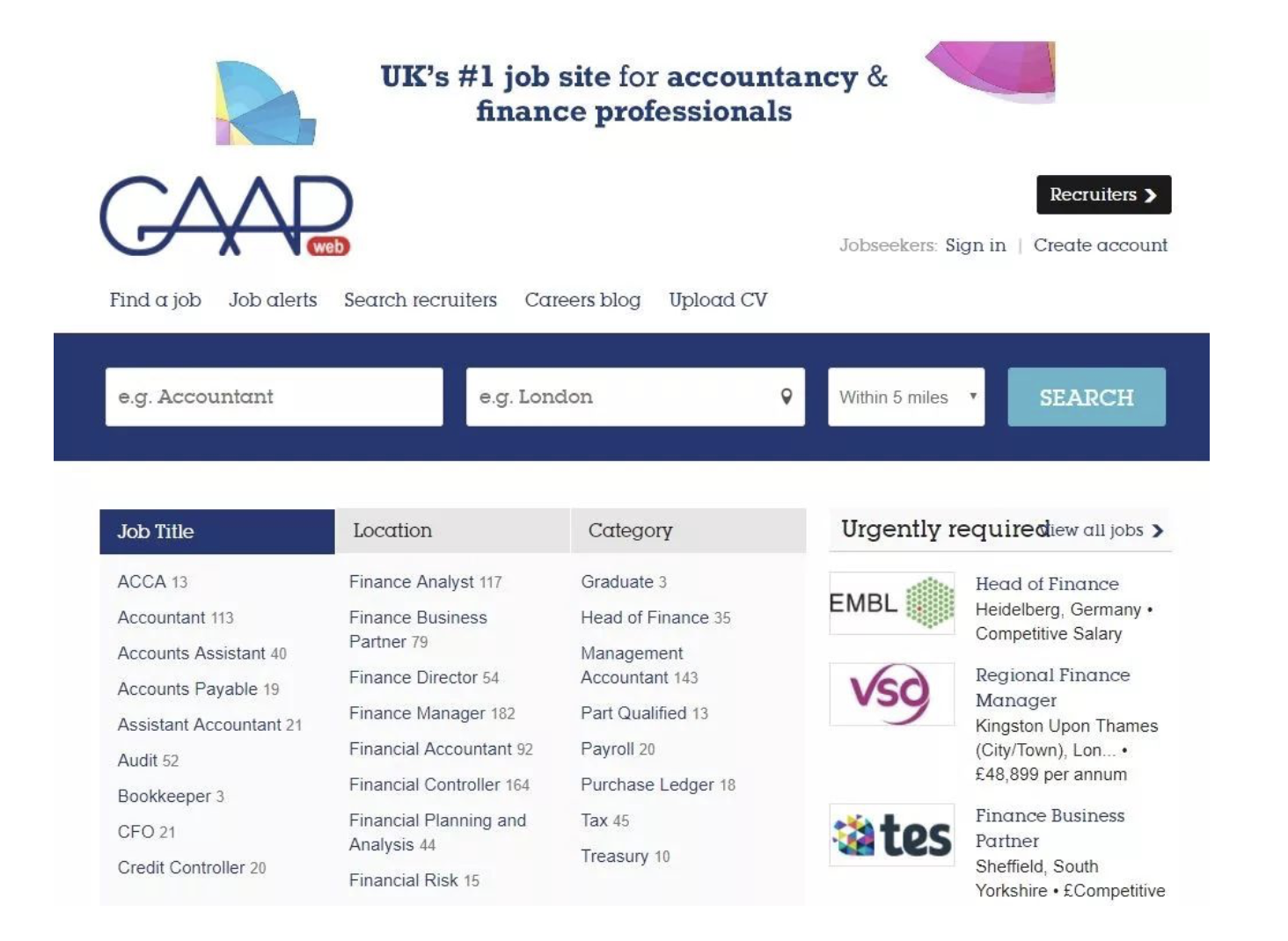Gaapweb.com 英国 会计和金融 工作发布网站,同时也发布英国外的工作机会。