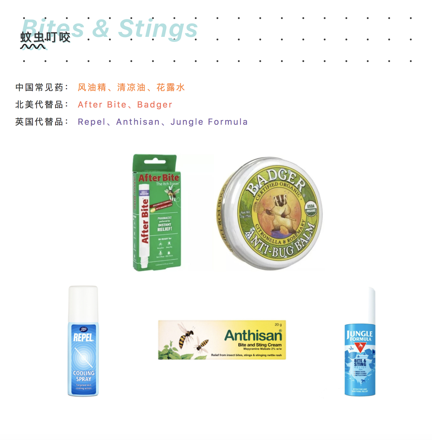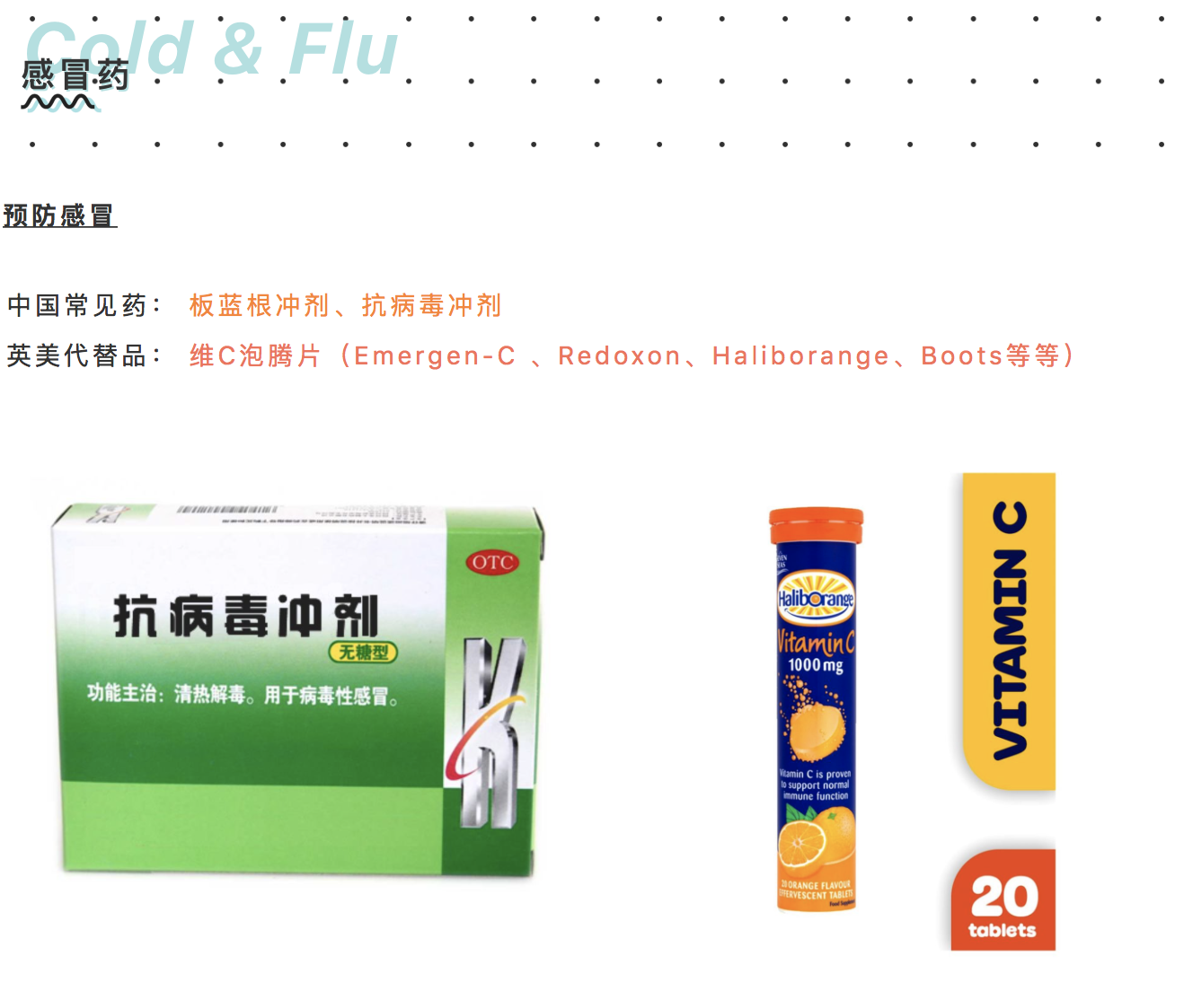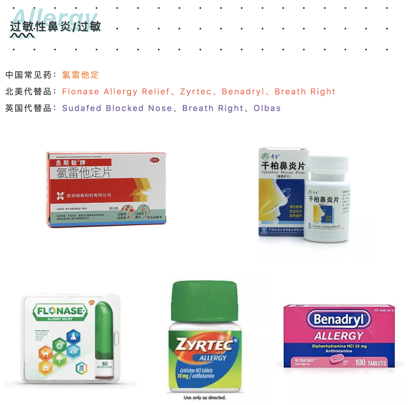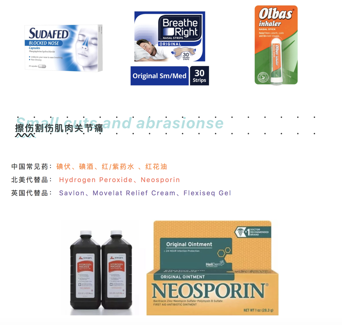 下面列出英美常见的药物,在具体使用时请务必对症下药,看好禁止事项与副作用,拿不准时一定要询问药剂师。