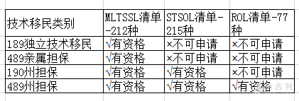 从以上表格可见,如果您的职业在MLTSSL清单中,您将有资格选择所有的技术移民类别,这也就是为什么我们对于移民局这次增加36种职业倒M清单如此的欢欣雀跃。