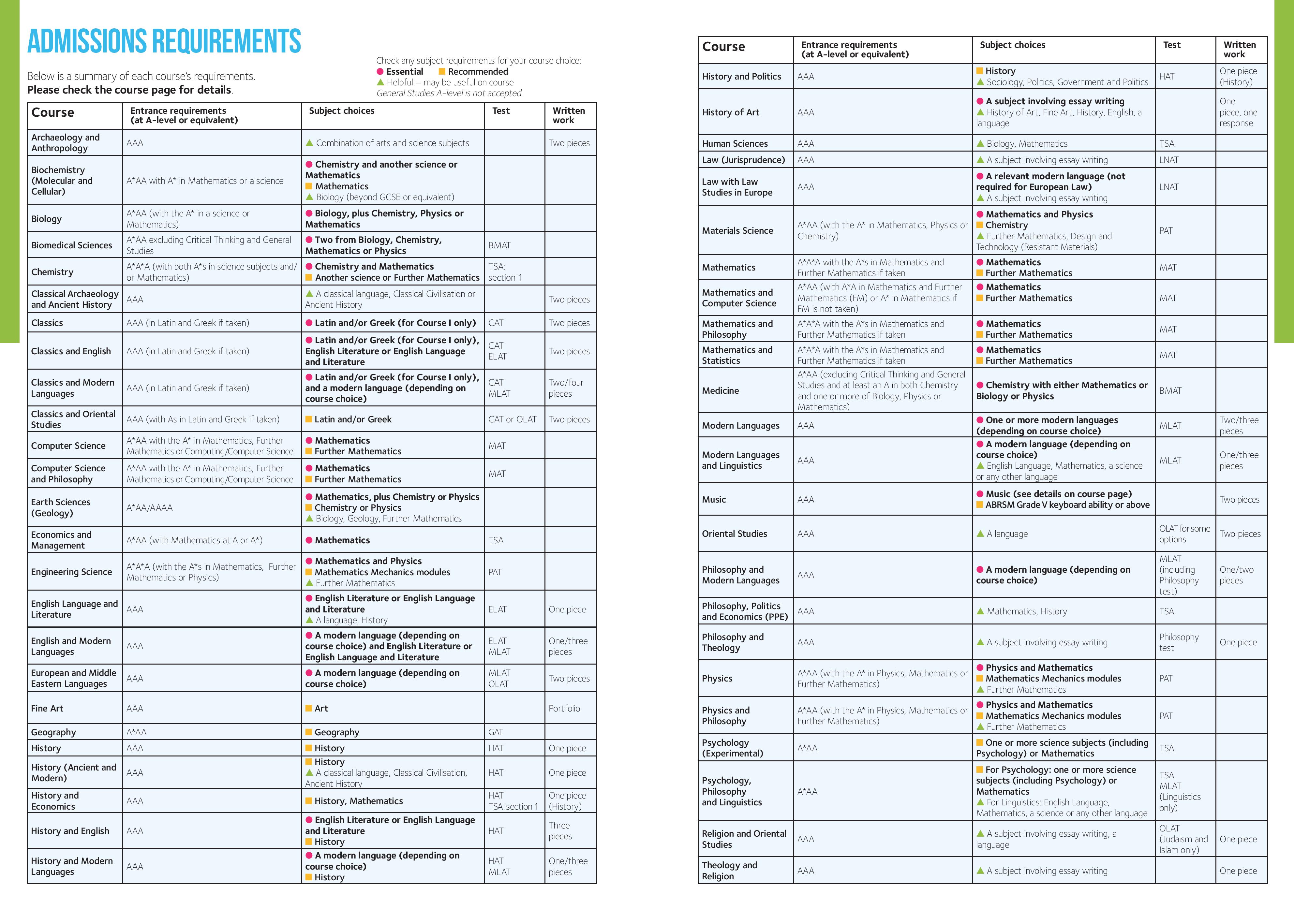 因为繁琐和十分有难度的笔试和面试,牛津大学给出的 offer 对 A-level 的要求并没有剑桥大学高,因为很大一部分人都在笔试和面试筛选过了。牛津本科对 A-level 的要求介于 AAA* 和 AAA ,而对于雅思的要求也是十分严格的。除了计算机科学,数学与统计,数学,数学与计算机这四门课程要求雅思 7.0 ,单项不低于 6.5 ,其余所有课程均要求雅思 7.5 ,单项不低于 7 。