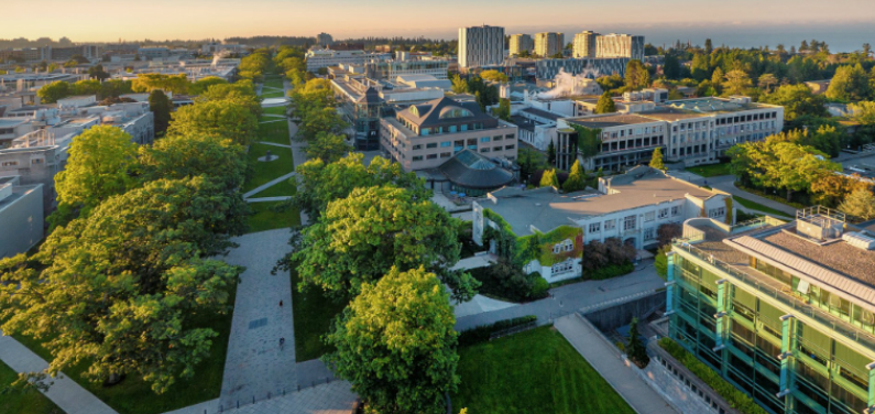 加拿大英属哥伦比亚大学校区: 英属哥伦比亚大学的主要校区有两处,一个为温哥华校区,位于加拿大第三大城市温哥华的市郊,距离温哥华只有 30 分钟的车程,校区占地达 400 公顷。这里有怡人的气候,绵延的海岸线,美丽的海洋与沙滩,是游览观光者必到之处。此外,温哥华校区还有该市最吸引人的学术及休闲娱乐设施,包括人类学博物馆、表演艺术中心、著名的 UBC 植物园及植物研究中心等。温哥华校区是 UBC 最大的校区,学生人数超过 45,000 名。 另一个校区为奥肯那根校区,开放于 2005 年 9 月,是个独具特色的小型大学校园。该校区在校人数约为 5,325 名,教职员工达 700 多名,共设有 7 个院系。 此外,英属哥伦比亚大学还有 Robson Square 和 Great Northern Way 两个校区。