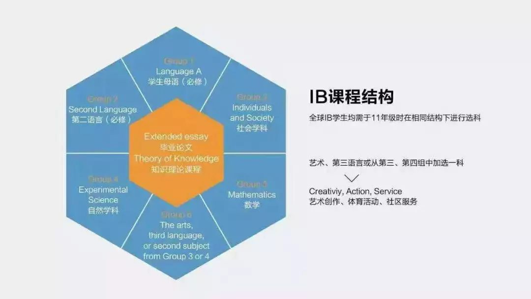 而国际学校通常选取的是高中阶段的课程,同时也是大学预科课程,这个阶段的课程可以总结成“6+3”。即6个学科组+3个核心课程: