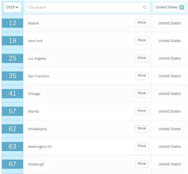 QS发布2019年最佳留学城市排名,美国14座城市入榜,你想去哪个城市?欢迎各位和我私聊咨询哦~