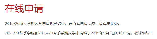2020/21 秋季 学期及2019/20 春季 学期,将于 2019年9月2日 开放申请。