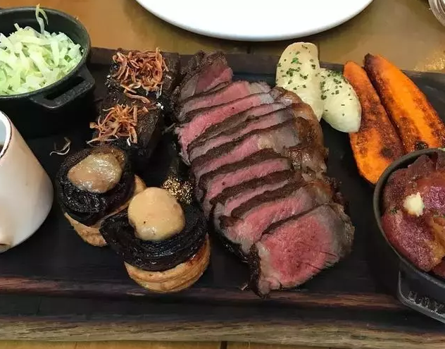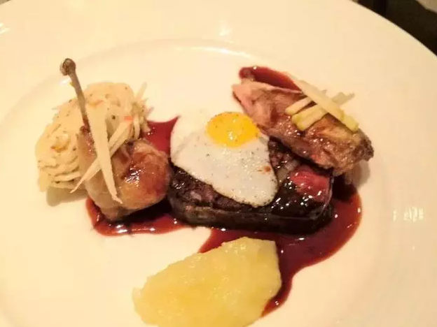相对于之前介绍的其它米其林餐厅,这家的菜分量真的大了不少,能让你吃撑回家的那种。英国人吃烤牛排,习惯带着血丝的熟度,如果不适应的话一定要让厨师做七分熟以上。