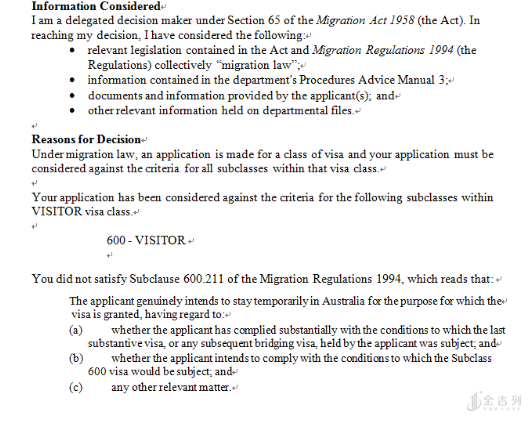 前几天又一个家长愁眉苦脸得找到我 说因为自己图便宜找旅行社办理赴澳的旅游签证被使馆拒签了 希望我能帮忙给翻案,拒签得理由是怀疑申请人没有足够得经济能力,也没有回国得动机,最终导致拒签 。拒签信截图如下: