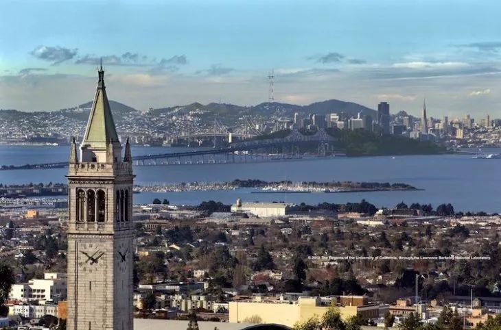 不少同学在介绍伯克利时都会说“这里有一个美丽的校园”,学校高耸的钟楼,远处海天一线,傍晚的余晖是粉色的,还能看见海边点点灯火。