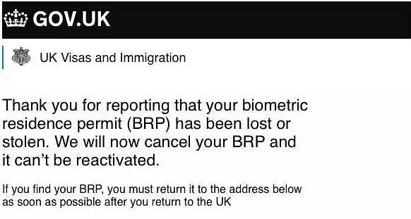 丢失BRP卡的情况可以分为在英国境内、境外两种。我们先来讲境外丢失。