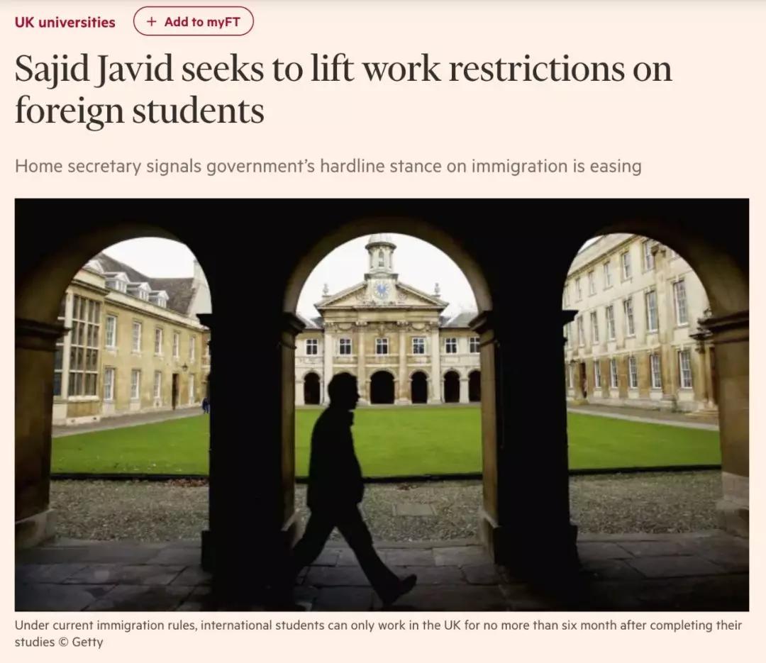 就在上个月,英国财政大臣Saji Javi释放信号,希望能为海外留学生创造一个更容易留英工作的环境。