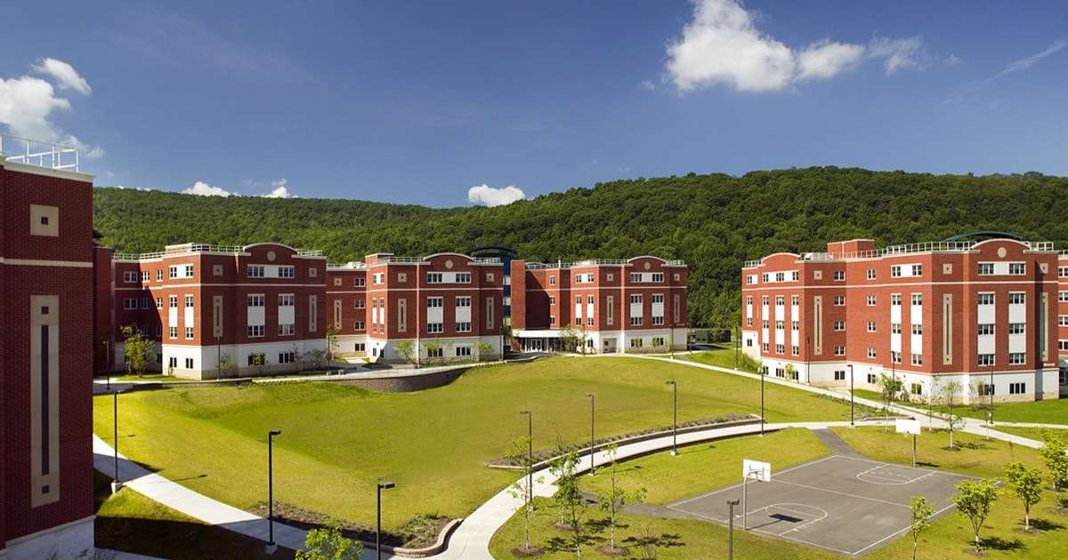 宾汉姆顿大学靠山面河,校园前有美国东海岸最长的河流--萨斯奎汉纳河(Susquehanna River)流过,为繁忙的校园生活增加了不少悠闲的情趣。校地面积887英姆(acres),分为七个区域,校园并有四