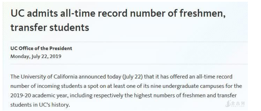 近日加州大学公布 2019 年录取数据, UCLA 连续两年录取率下降。 7 月 22 日,加州大学 (University of California) 公布 2019 年秋季入学新生数据。