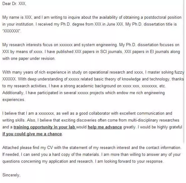 主题不明确,花一通介绍自己,并没有用,和我又什么关系呢?能对我的实验室有什么帮助么。博士生的话可以提Training opportunity,本来博士就是一个训练过程