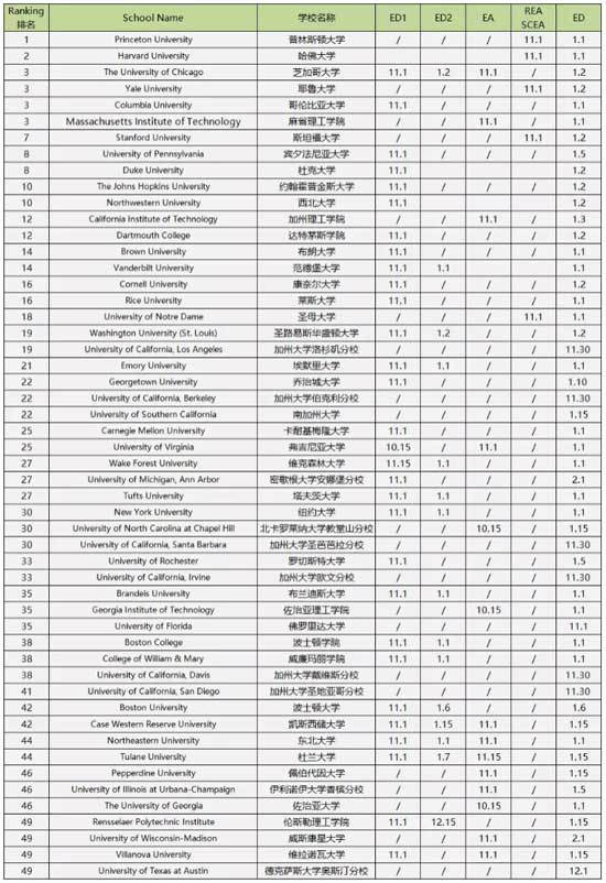 下面来看一下2020年美国排名Top50美国大学申请截止时间详情。
