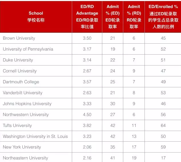 - 申请ED的目的是为了提高被自己Dream School录取的概率。采用ED申请的大学是综合排名靠前的大学或者学院,并且ED申请率通常比常规申请率高。