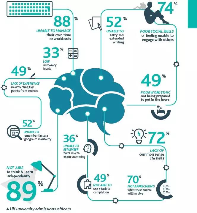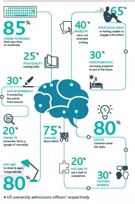 - 80%招生官 – 缺乏基本的生活常识技能;