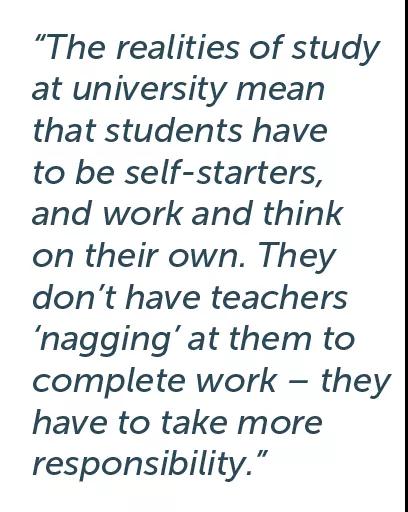 一位美国的招生官表示: “在大学,事实就是每个学生都要成为积极主动者,自己学习,自己思考。没有老师会整天唠叨让学生写作业,学生必须自己负责。”