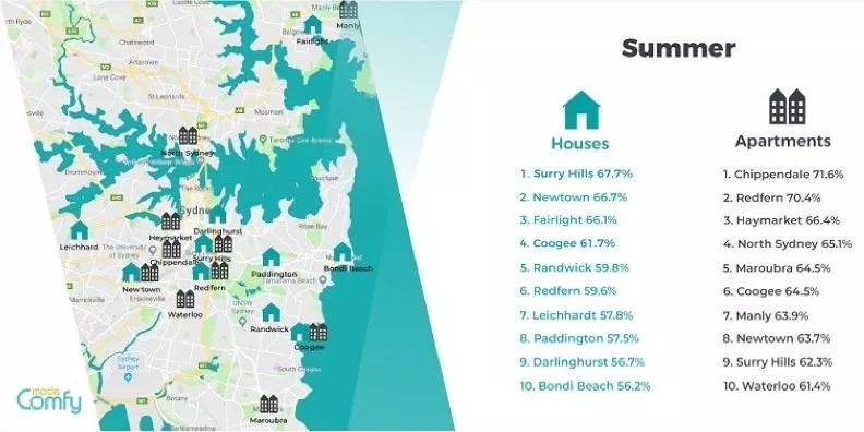 一般来说,中央商业区(CBD) 周遭的房源是最热门的,无论是要参与会议、应酬的商务人士,或是想住在便利市中心以体验当地文化的游客们,中央商业区的周遭都会是很好的选择。而季节也是另一项影响住房率的要素,澳大利亚著名的海岸线在夏季总能吸引大量的游客,因此靠海的区域像是Manly,Coogee和Boni都能有突出的投资报酬率。
