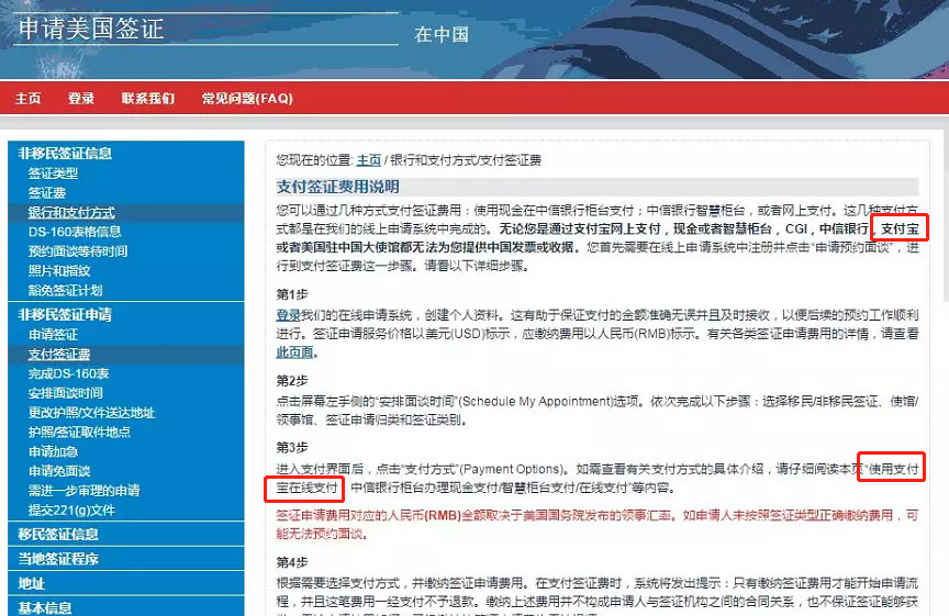 如何用支付宝支付美国签证费?