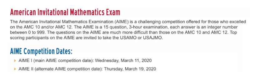 尤其是AIME,由于其对学生数学能力有深入的考察,且分数差别较大,很能区分出学生的真实数学水平,他所在的卡耐基梅隆大学数学系就把AIME分数作为是否录取的一大考量。