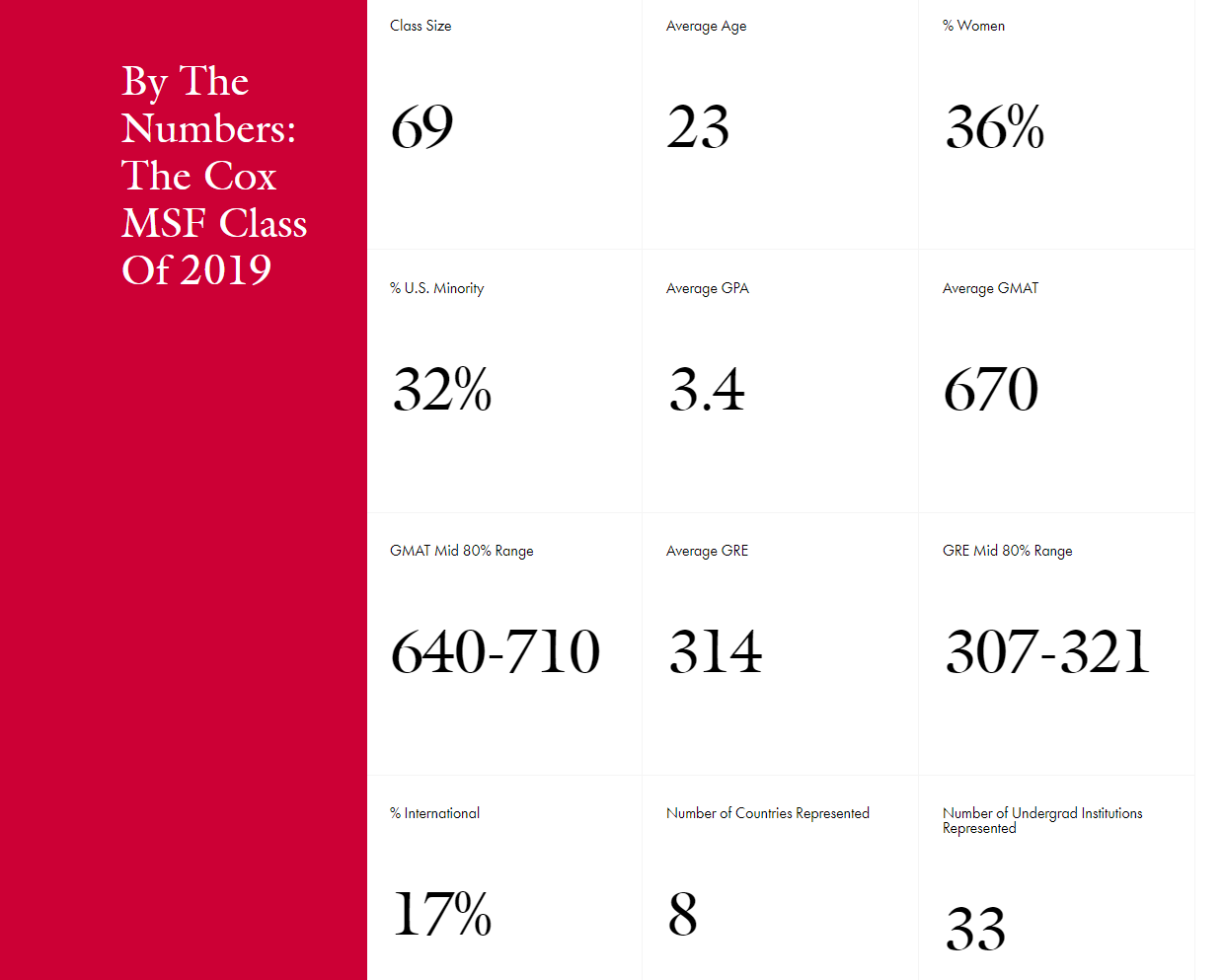 MSF项目分为四个模块(两个学期)的全日制课程和八个模块(四个学期)的兼职课程。所有的SMU考克斯研究生课程都提供8周的模块(半学期),每节课有两个学分。每学期有两个模块,模块A和模块b .申请者将熟悉基本入门课程金融、会计、经济学和统计学,学校也举办夏季新生训练营让学生开始提前熟悉这些学科。