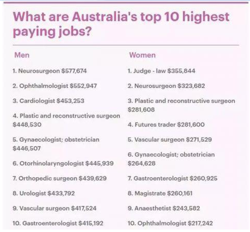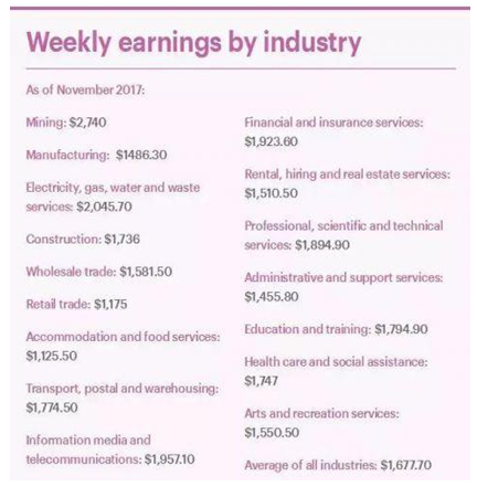 看了澳大利亚各行部分职业的收入后,现在知道在澳大利亚干什么最挣钱了吧!