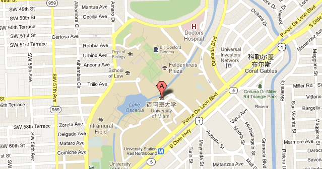 迈阿密大学(University of Miami)是一所始建于1925年的私立高等学府,也是美国东南地区提供最广泛科研与教学的大学之一,2012年《美国新闻周刊和世界报道》综合排名38名。每年研究经费约为3.26亿美金。迈阿密大学共拥有本科及研究生15,000多人,包括近1600名来自世界110多个国家的国际学生。该校拥有约2,000名全职教学人员,学生与教员的比例约为11:1,采取小班教学,50%以上的班级人数小于15人,75%的班级小于25人。