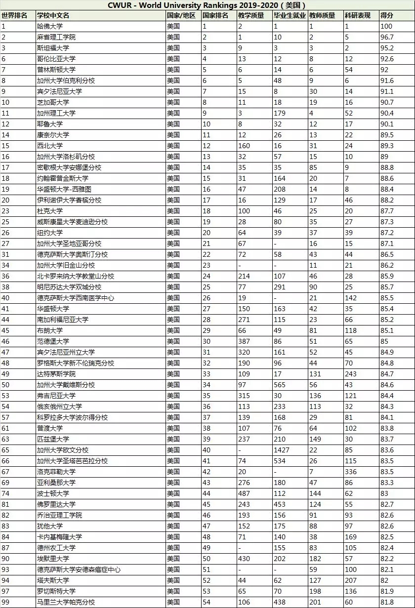 近日,世界大学排名中心(Center For Worl University Rankings,简称CWUR)发布了2019-2020的世界大学排名。该排名评估了全球99个国家的2万余所大学,得出了一份包含2000所院校的世界大学排名。CWUR在不依赖调查和提交的大学数据的情况下,根据七个因素对大学进行排名:教学质量、校友就业、师资质量、研究成果、高质量出版物、影响力和引文。