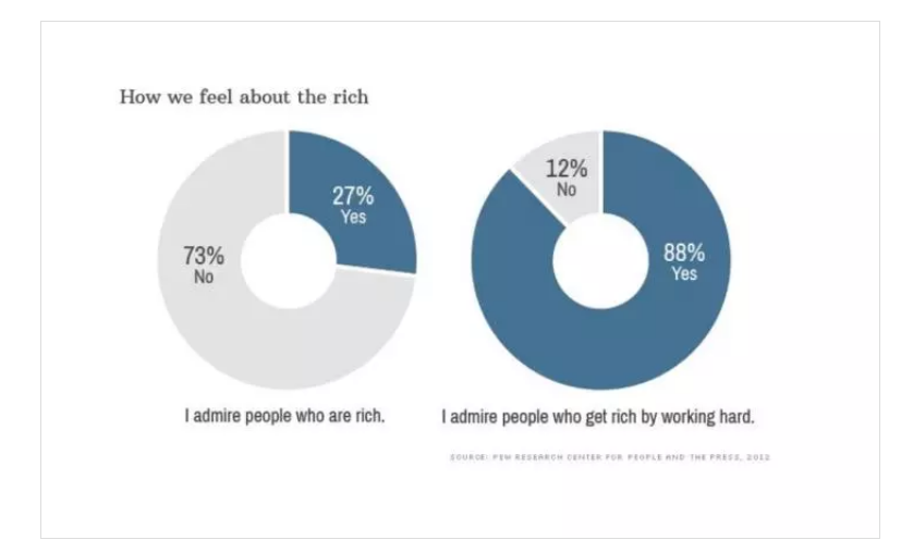 (数据来源:CNN,88%人更欣赏羡慕通过自己努力工作积累财富的富人。)